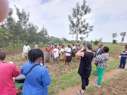 Farmers during irrigation training in NAKIVALE Refugee settlement